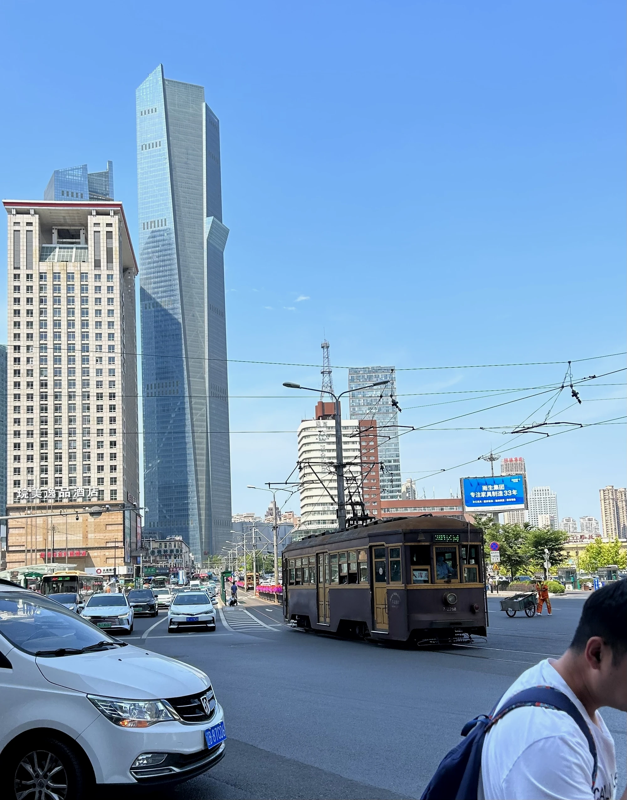 ④大连保留了电车🚎,之前来的时候有见过一次,老式的电车还在运行,可惜没坐上,和上面电线接触的地方一路火花带闪电的,大连的鸟估计不会选择站在电线上