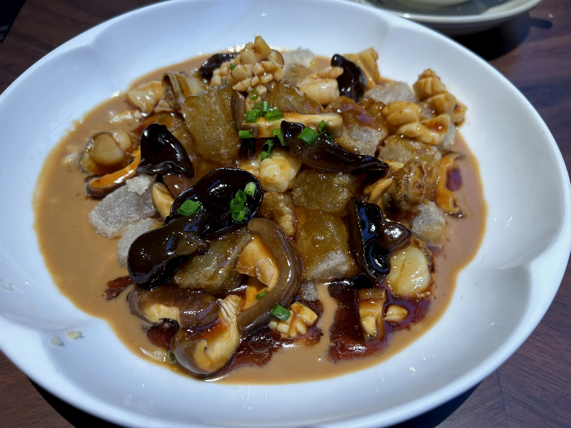 好像是特色菜,焖子的口感很奇特…吃起来有点像肥肉,貌似各地对于“三鲜”的定义都不一样?最绝的是加入了大量麻酱,南方人很少接触得到麻酱,好吃😋!