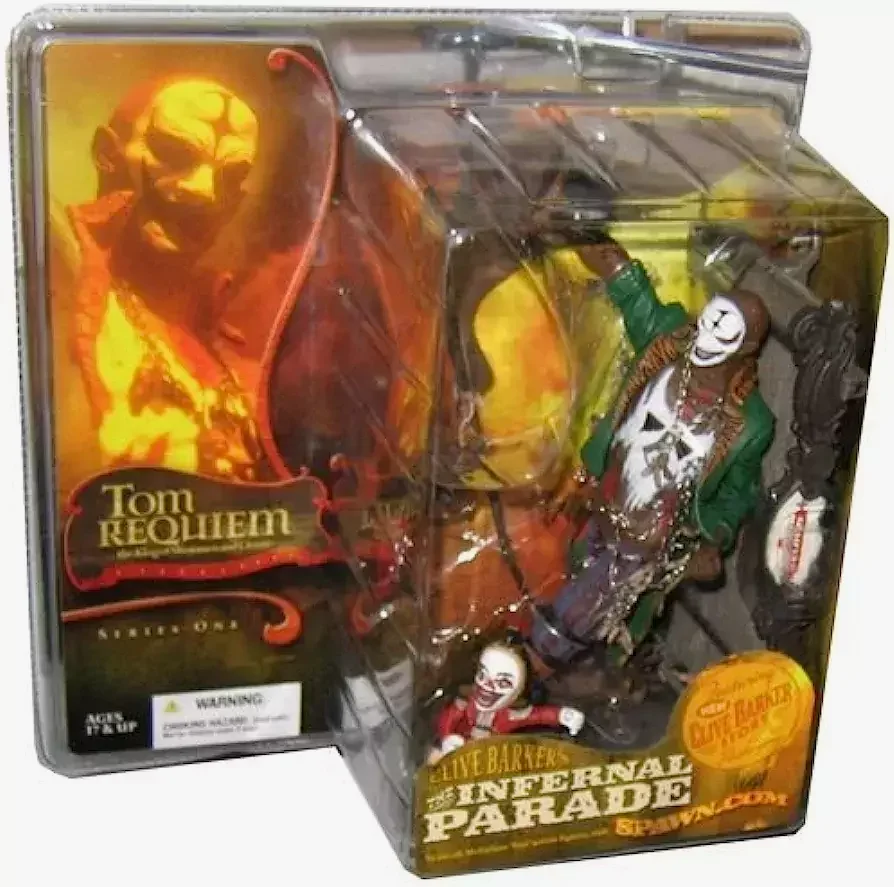2004年,麦克法兰玩具公司推出了“克里夫•巴克的地狱游行”系列手办,包装上印了巴克创作的,相当于角色介绍的小故事。到2017年,这些故事配上艺术家Bob Eggleton绘制的精美封面和内页插图,印成薄薄的精装本《地狱游行/Infernal Parade》发售,被巴克的一些老粉怒斥为抢钱之作。