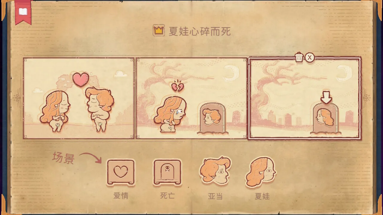 当然,《Storyteller》还是有许多不足,比如总关卡数量较少,刚刚上头的时候游戏就结束了;除此之外,游戏的破关判定还是强调更逻辑性,对于留白、隐喻等强调感性的创作意图就很难识别出来了——据说开发者花了15年才做完这个游戏,人世就是如此复杂,屈指可数的几个场景角色格子,就要花上大半辈子去揣摩。