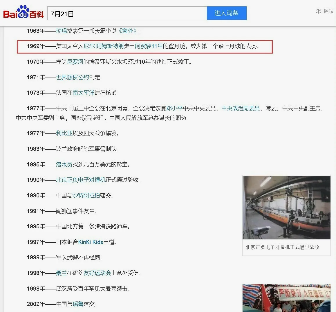2:【1969年07月21日】——美国太空人尼尔·阿姆斯特朗走出阿波罗11号的登月舱,成为第一个踏上月球的人类。