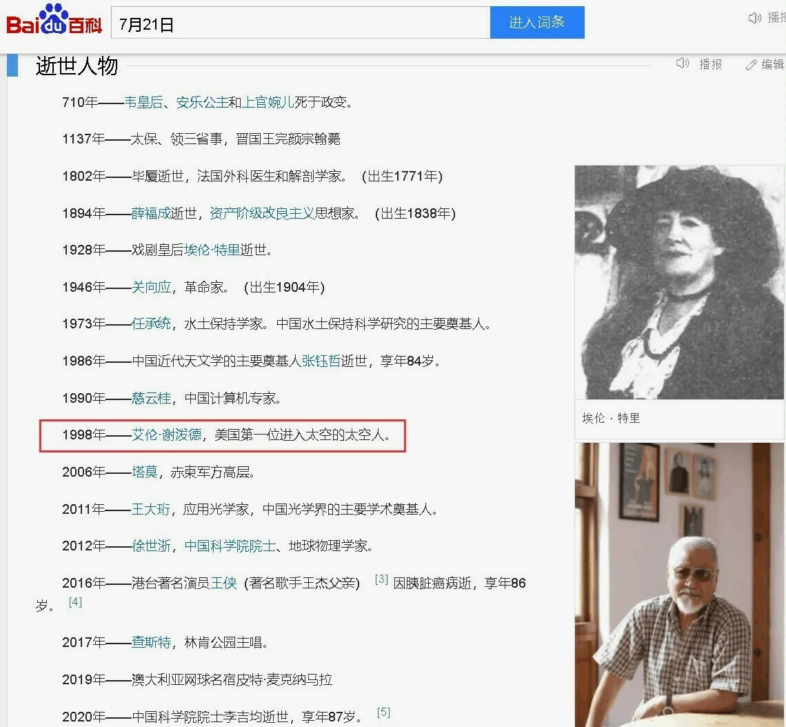【1998年07月21日】——艾伦·谢泼德,美国第一位进入太空的太空人。
