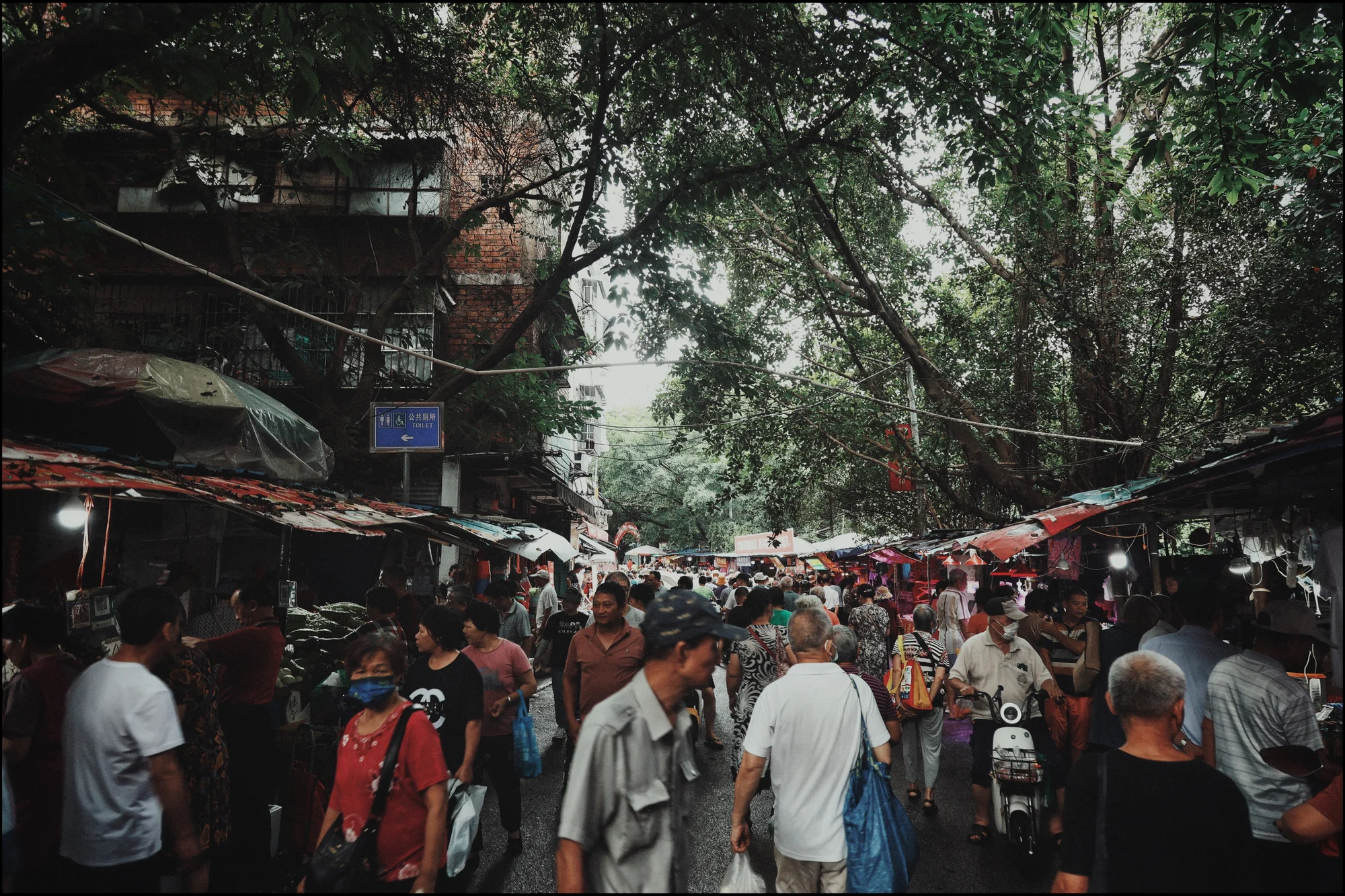 【 4. 市场里98%以上都是阿伯阿嬷,拉着轻便小推车,在这水泄不通的洪流中蛄蛹前行,即使是疫情结束这么久,我俩也好久不曾见过人口密度如此之高的地方了。】