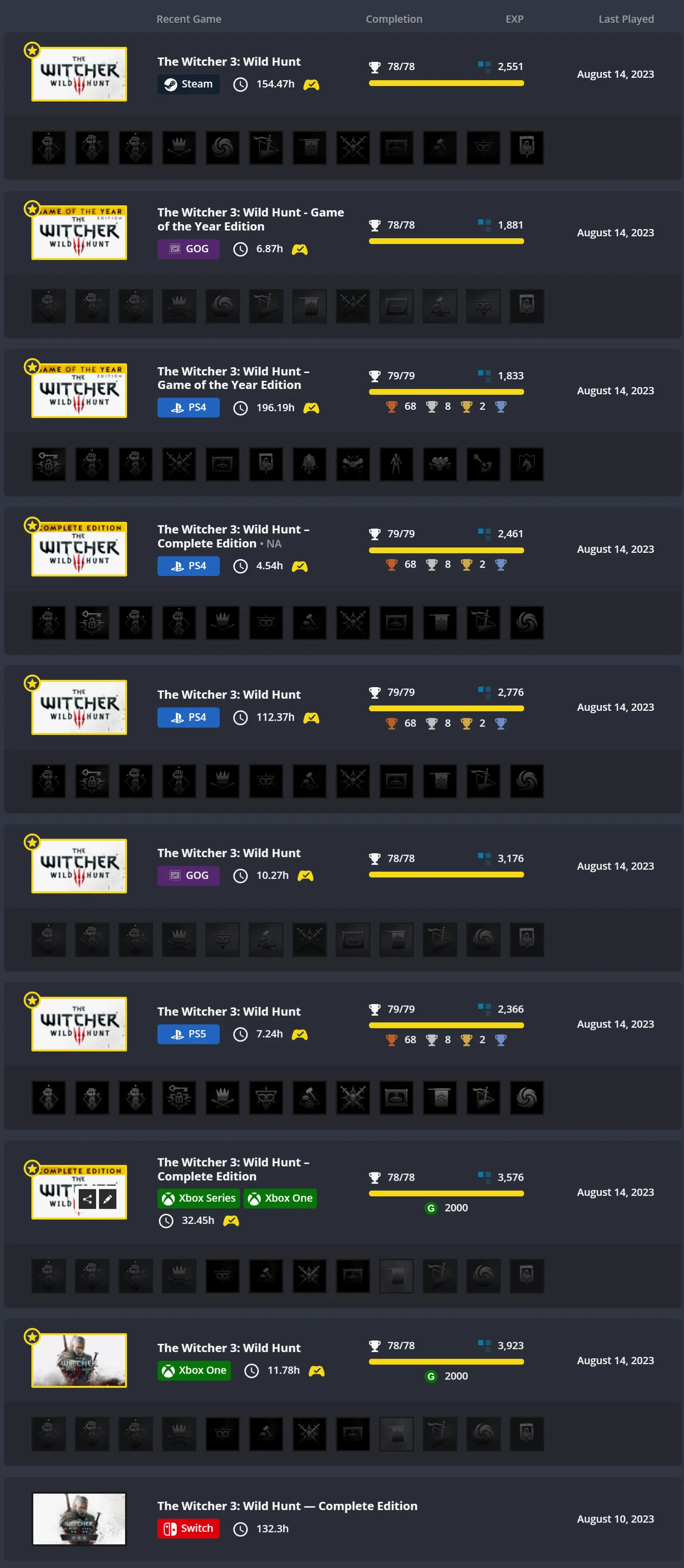 碰巧生日这天完成了《巫师3:狂猎》全平台全版本全成就。跨平台云存档是好文明。