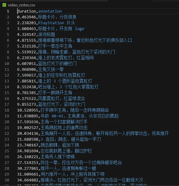 我只是将这个角度反了过来,从成品的视频中拆出画面和对话、标出强度,刚好适合用来对比分析。