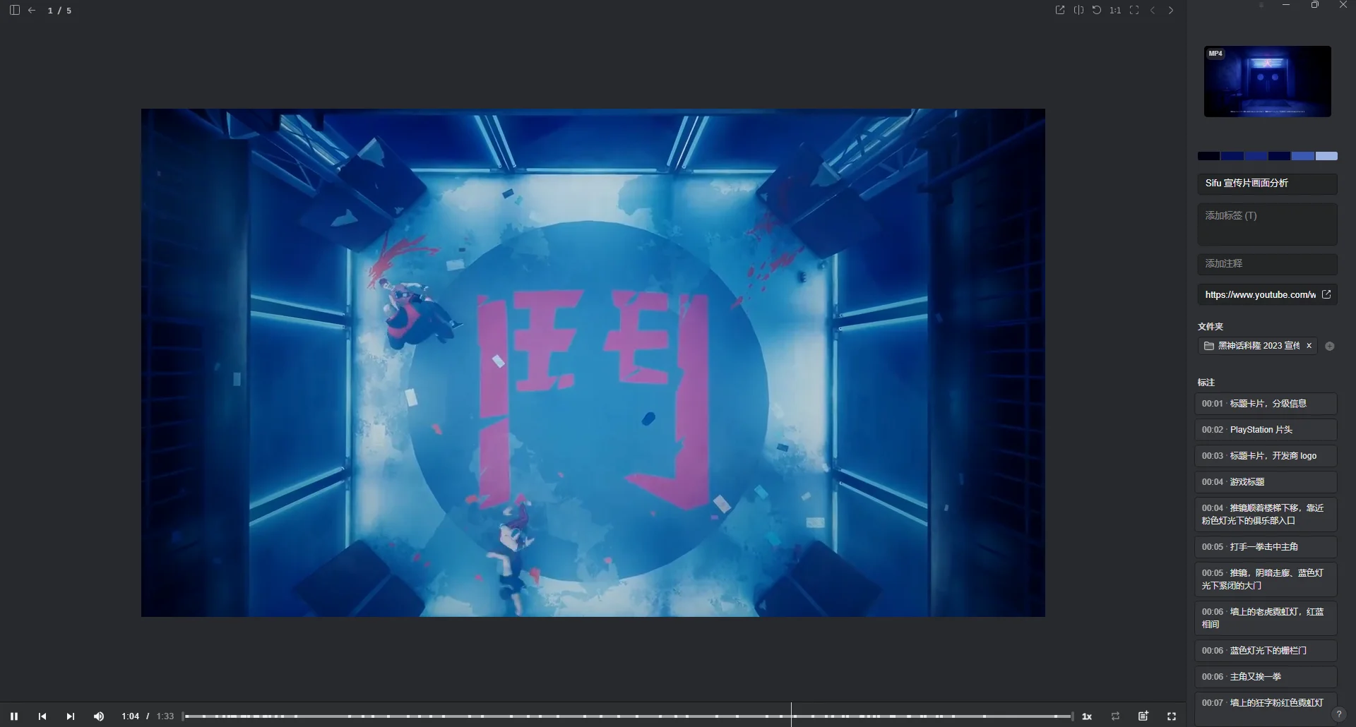 1. 标注画面/对话,将视频下载后导入素材管理软件 Eagle,边看边做笔记,标出每段画面和对话