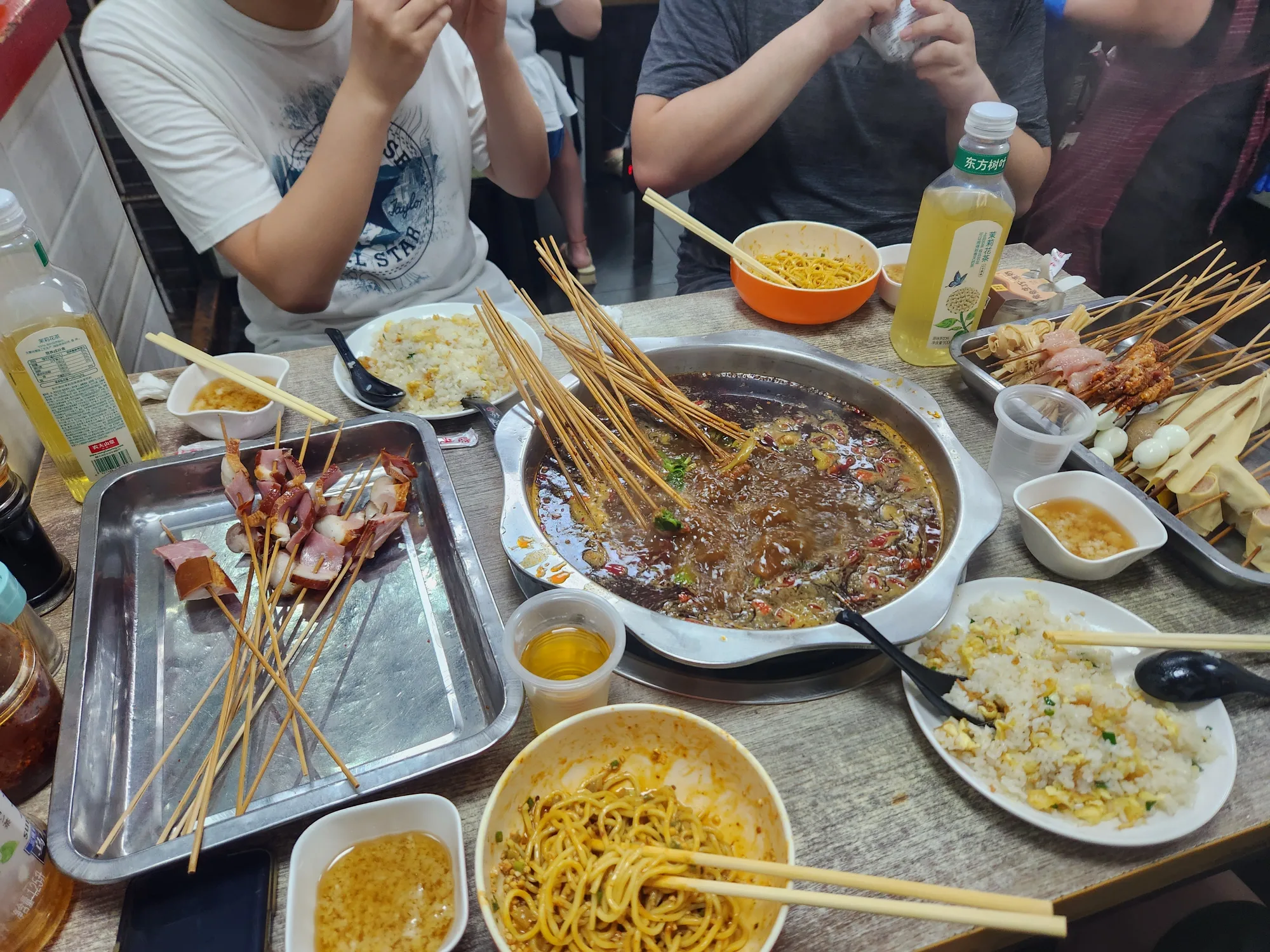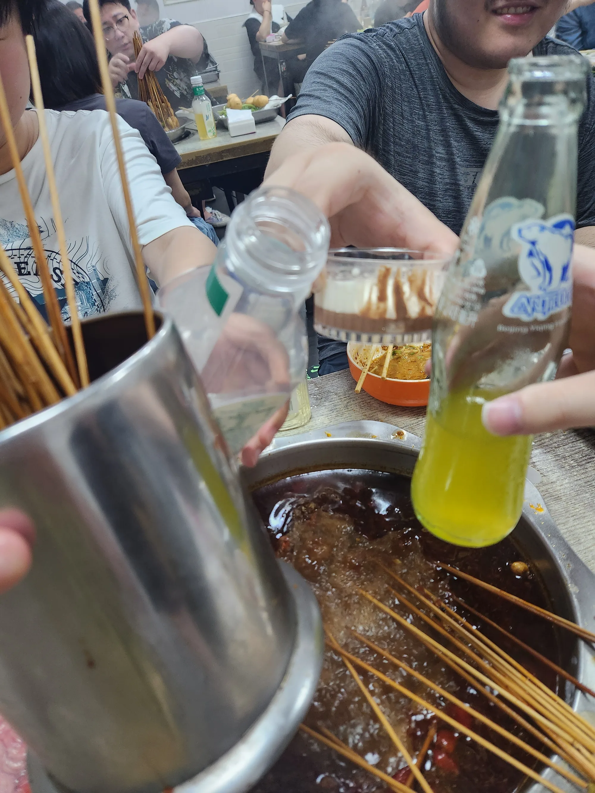 开在马路边但是没熟人领一般找不到店门口,这店属于是跟我没三年交情都不会带来吃的这么一家馆子。开了有十多年了吧,我是从初中吃到现在上班,从5毛一串吃到现在不知道多钱一串(应该跟马路边边一个价儿)。吃的就是一个热闹,一个痛快。能被称之为“脏摊”,非常推荐兄弟三四个一起去(座位小五个就坐不下了)