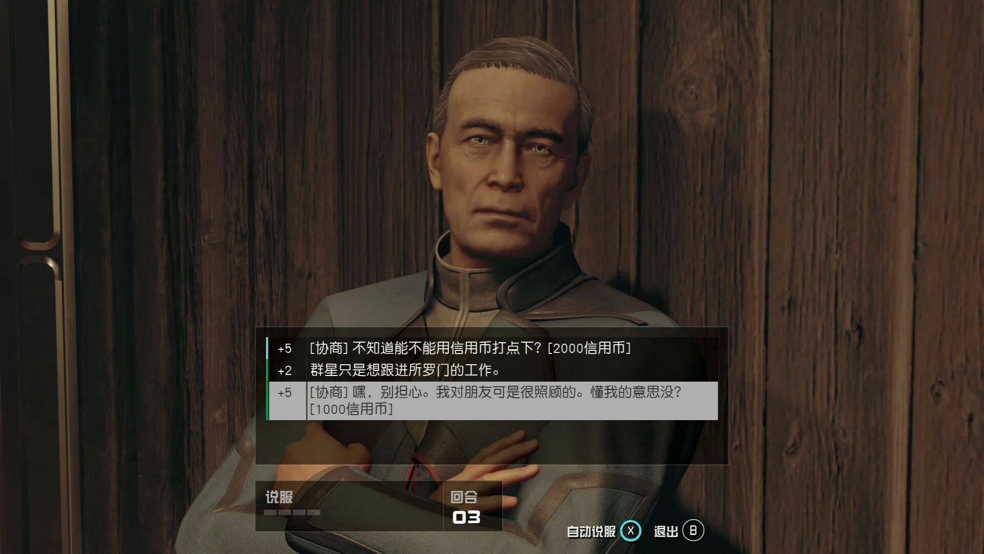 星空的说服选项真的有点灾难了。各种看似有关但是略带前言不搭后语的回复就不提了。如果你点了贿赂这个技能的话,你就可以跟这个和儿子闹了多年矛盾的倔老头子勾肩搭背,用油腻的语气塞给他这个名门望族小小一千块钱,事情就这么解决了。太灾难了,这就好像是你兄弟在跟父母吵架,然后你跑过去跟人家老头子说,“哥们,懂不,这一千块给你,以后少找我兄弟麻烦。”,然后老头点头哈腰的就走了。真牛逼b社,真牛逼!