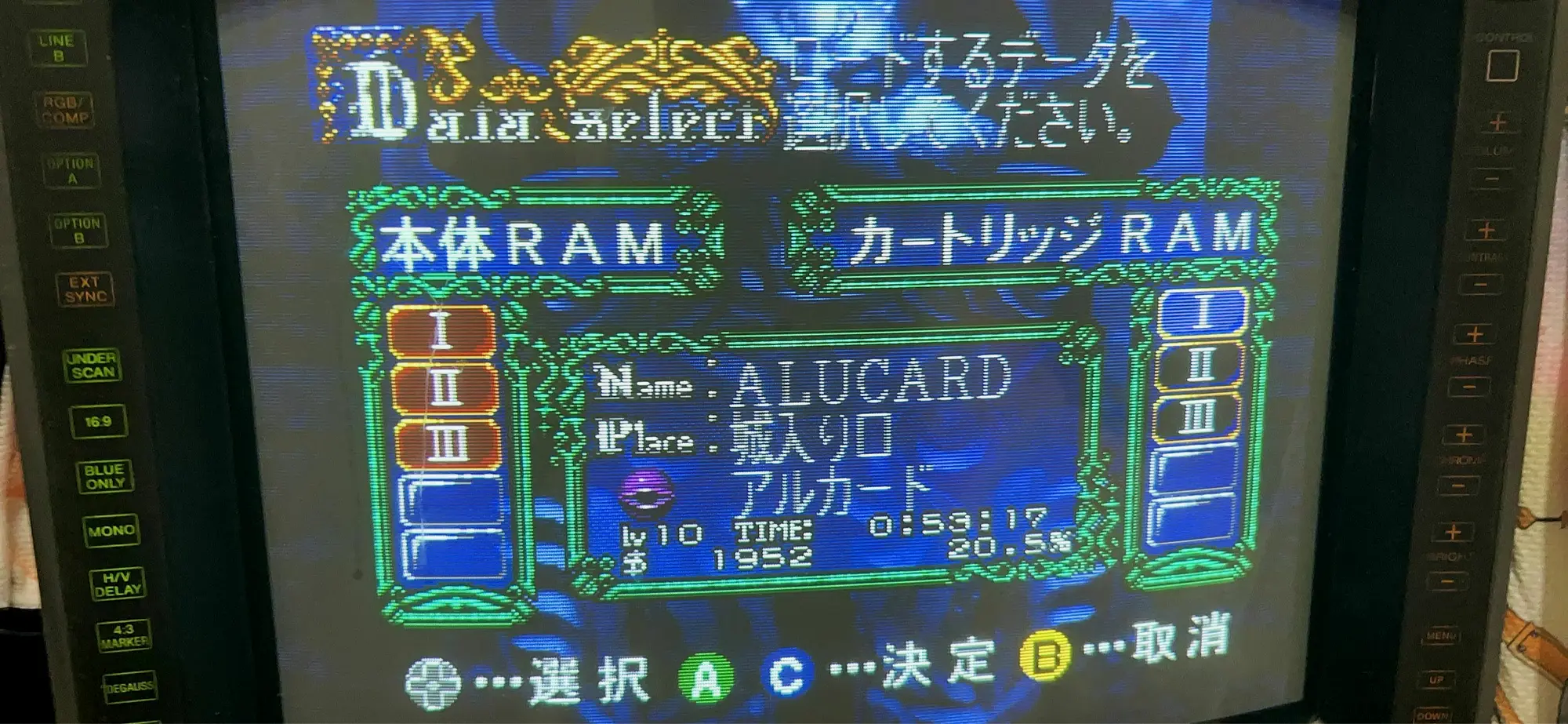 过几天继续把SS版也通了(图四),SS版满探索率211.2%(其实就是多正逆加起来四个区域),说实话当初收ss版都是冲着独占新地图新怪物去的,结果我找了个通关存档导入后去地下庭园和死囚牢狱走了一圈发现不过尔尔(图五),新的怪明显是科乐美名古屋社设计,完全没有原版的味道,而且ss版画面差,缺少透明度和动画效果,还要先进菜单再看地图,而且似乎复杂动画下画面拖慢比ps版还严重。,当年包装上宣传“完全版恶魔城”估计也只是为了弥补土星在主机战争的劣势吧。