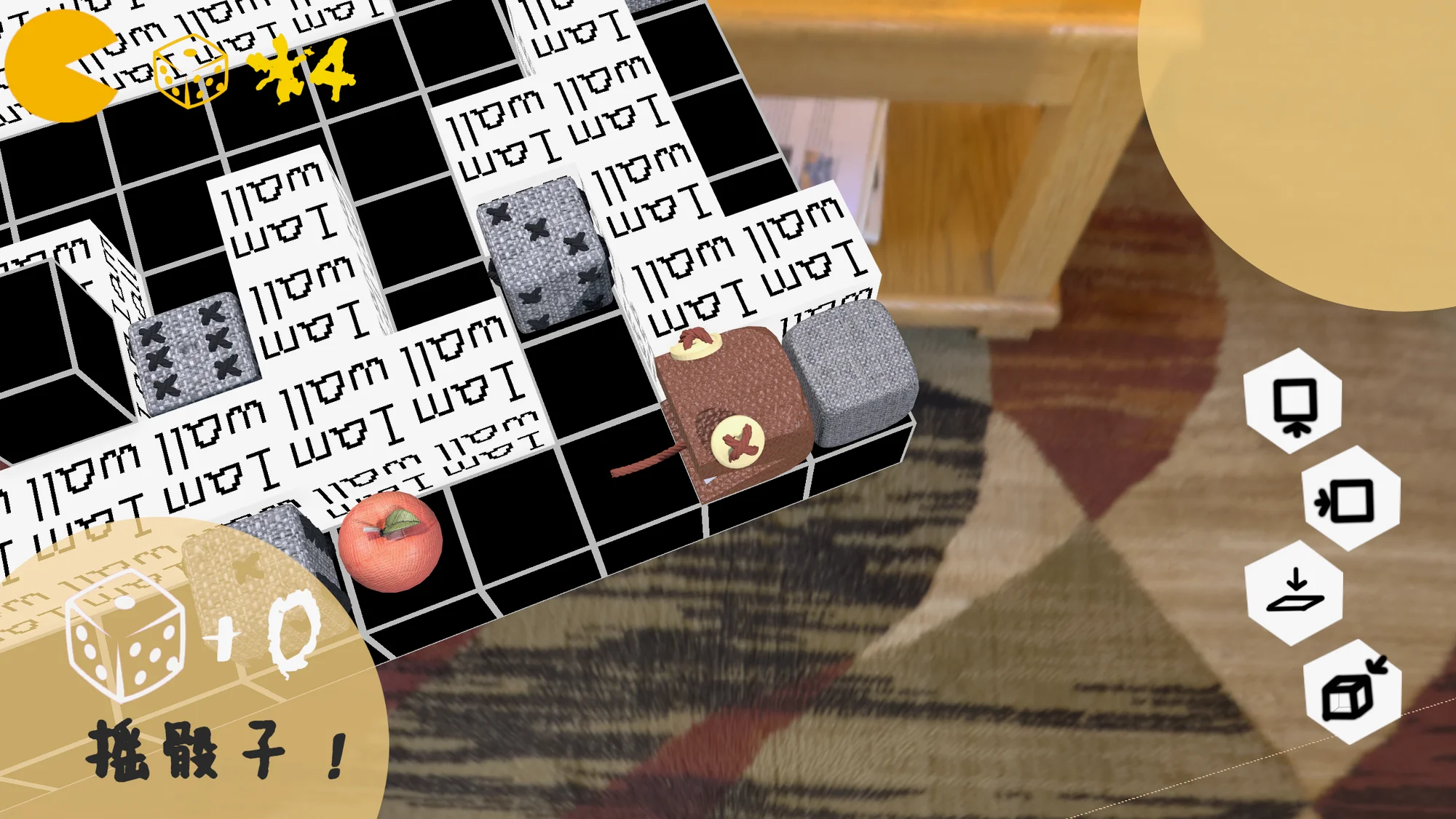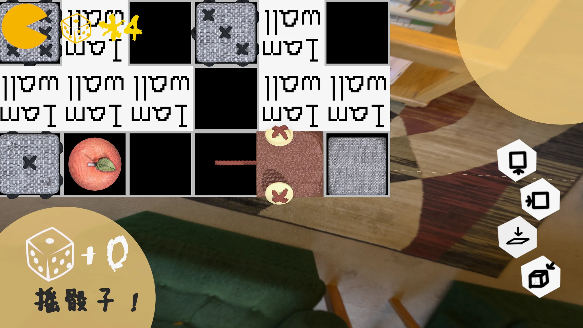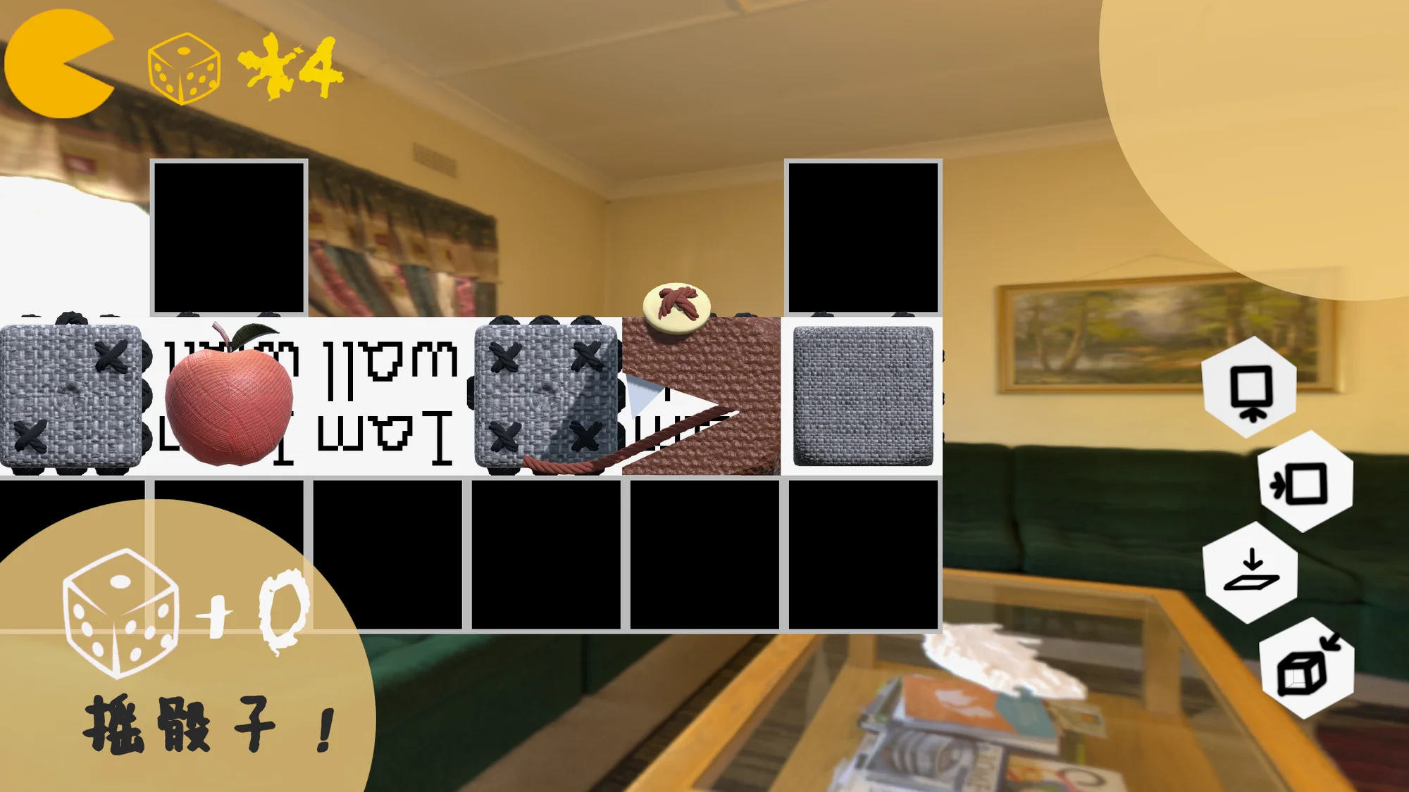 当切换不同的视图时,原本的障碍会消失,地图完全变了个样子,这是最令人感觉惊喜的。如果立体感比较强的人玩,很快就能规划出最短路线,并做出是否绕远路多吃一个苹果或者骰子的决定。如果立体感比较差的人玩会上手很慢,转很多次视角才能搞清楚规则。