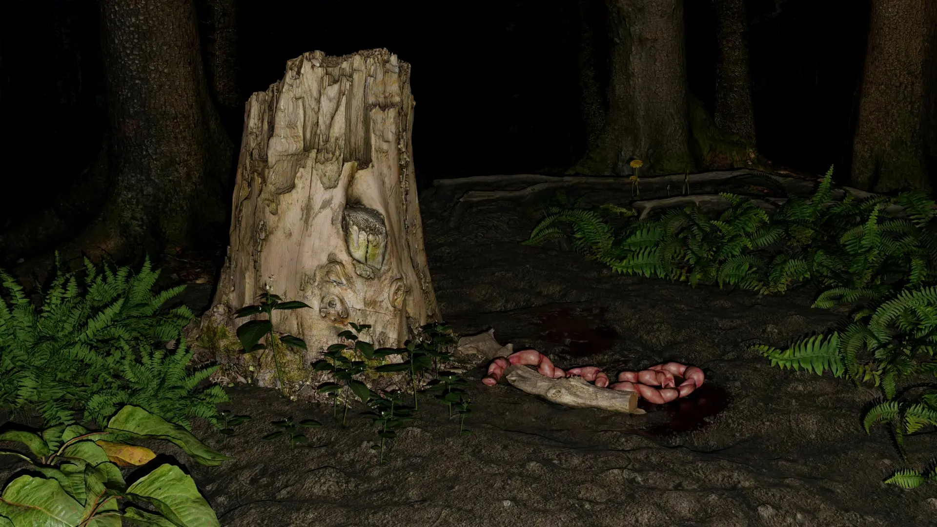 临近午夜,我独自在森林中走动,想看一看这里夜间的生态模式,想着是否可以捕捉到猎人与猎物的画面,也许是猫头鹰的捕猎场景?突然,我听到了不远处的一阵嘈杂,我提高警惕,盯着声音发出的地方,声音来自一片茂密的灌木之后,没想到,一阵刺耳的惨叫声,伴随着液体喷溅的声音从同一个地方传来。那是什么?!是人的惨叫吗?我的手不住颤抖起来。接着,一阵急促的脚步声渐渐远去,听上去不止一个人。我吓坏了,直到周围没有任何声音。我打开随身的手电,慢慢朝声音发出的地方走去,我感觉我脚不住的打颤,几乎失去控制。我扒开灌木丛,看到了我至今难忘的场面....
