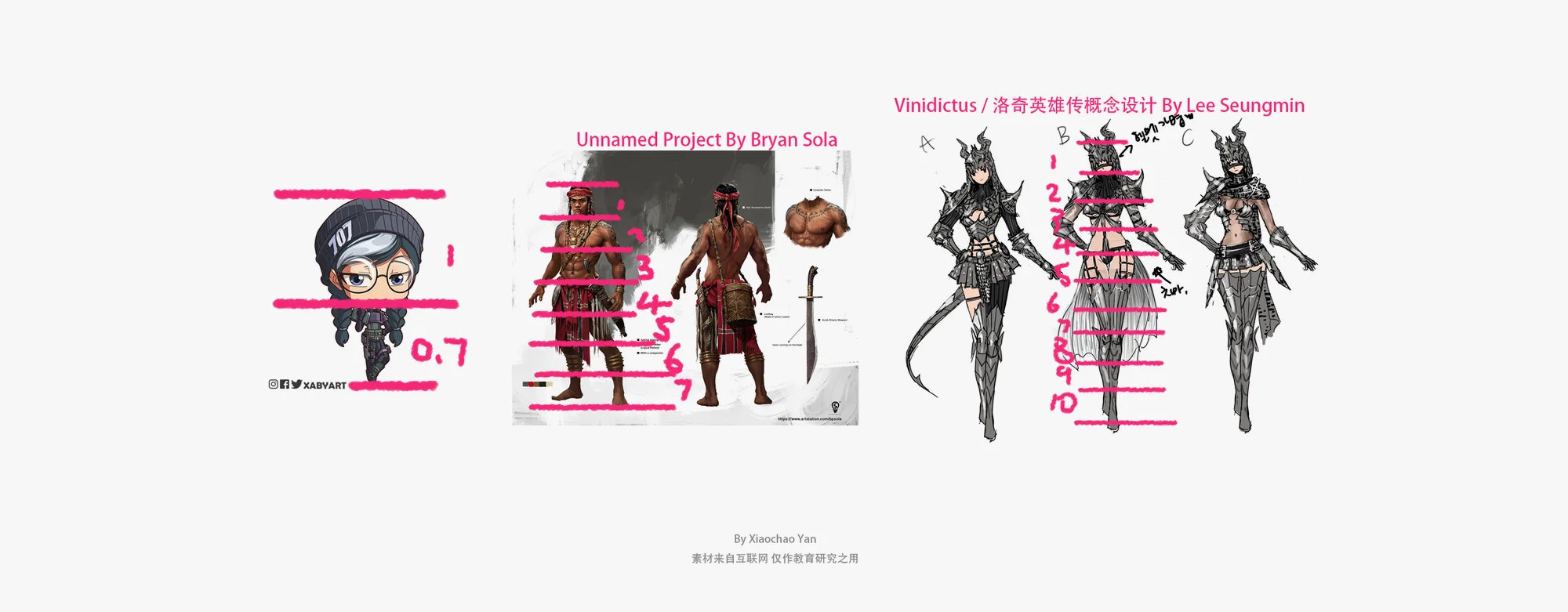 - 部分韩式画风画师 会有意在做2D人物概念设计时 将头身比调高 0.5~1