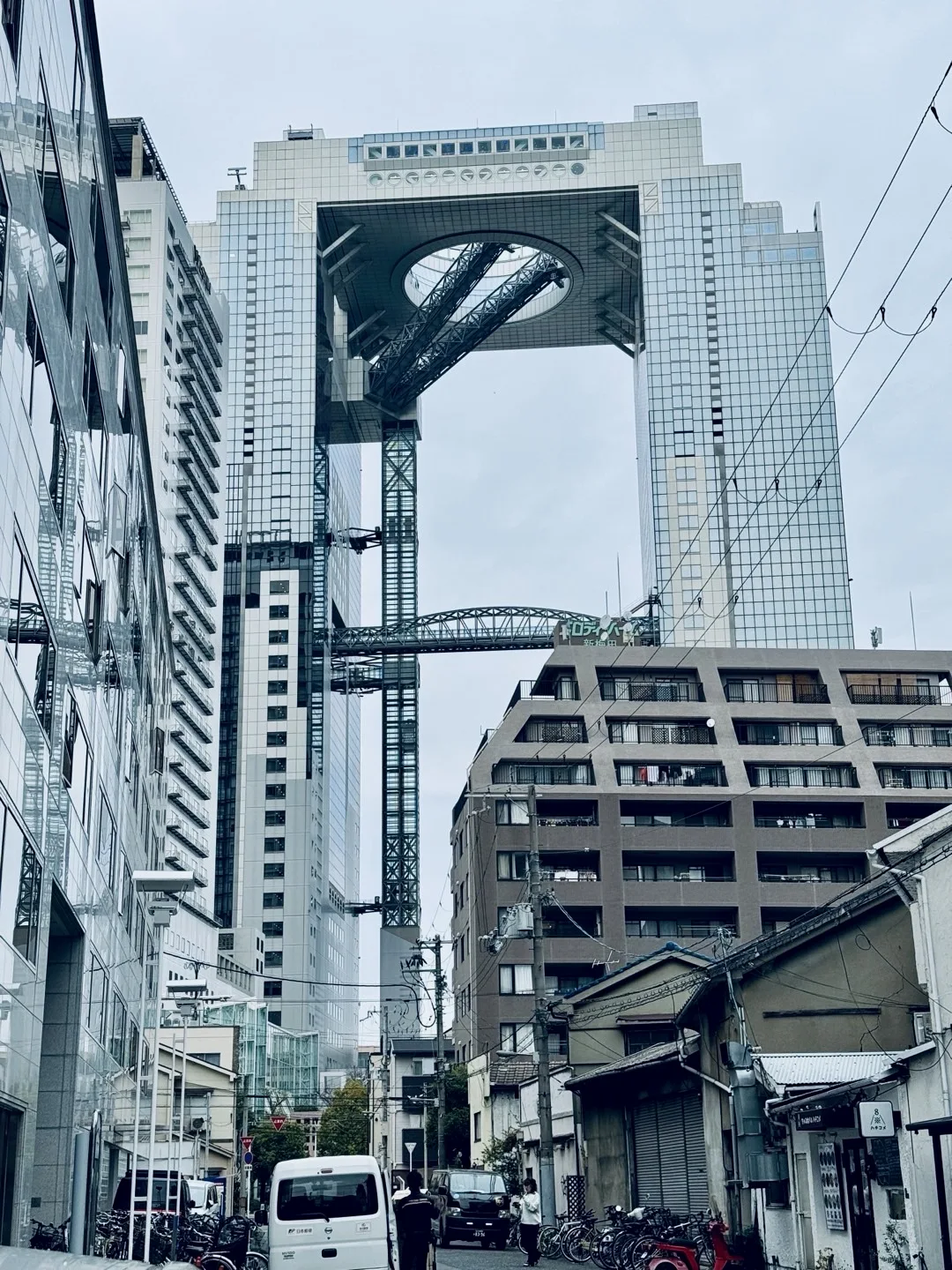 都是这种旁边建筑中间架空的平台,而且梅田大厦最初的设计是4个方向都有塔楼