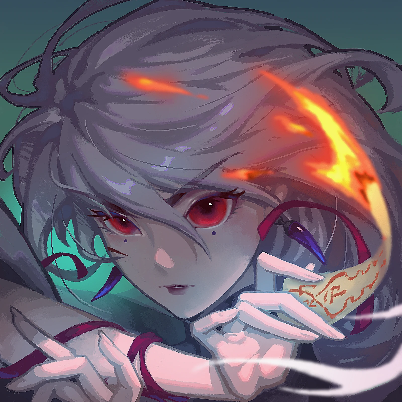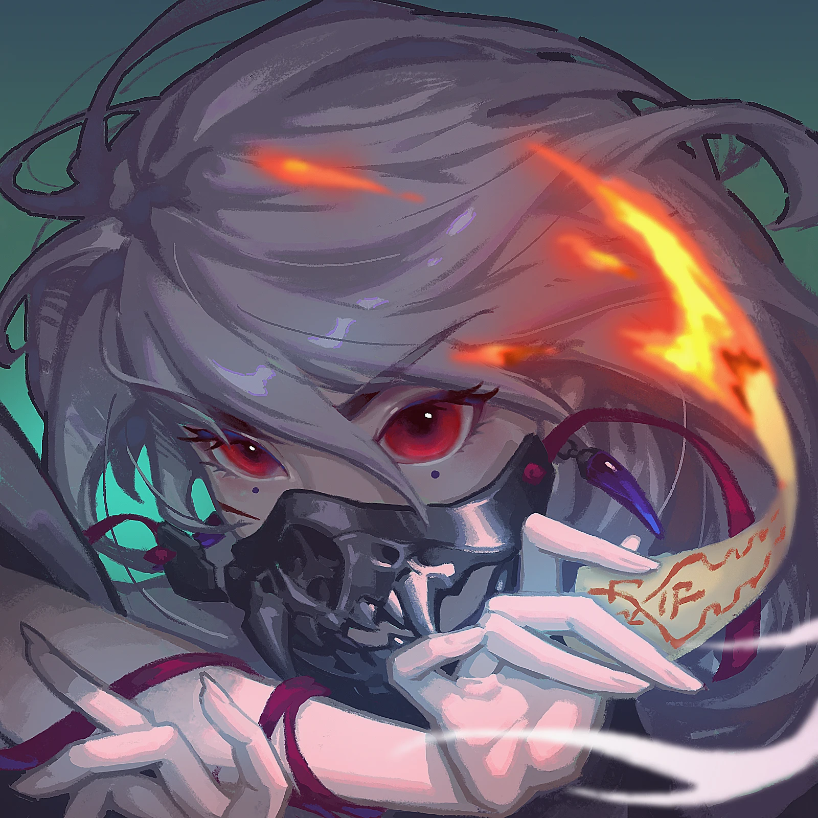最近为了开头像橱窗随手画的头像,右滑去掉面具……说实话,非常缝合,简单的头脑风暴了一下哪些元素比较抢眼,然后没啥道理的拼在了一起