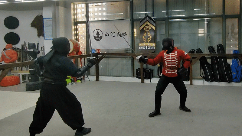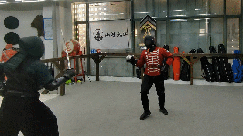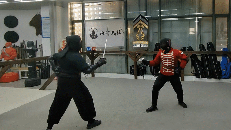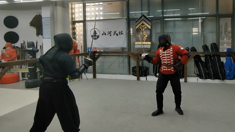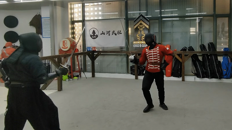 这种军刀对练节奏比较轻快,一般也以上半身对抗为主,步伐控制要求也更高~