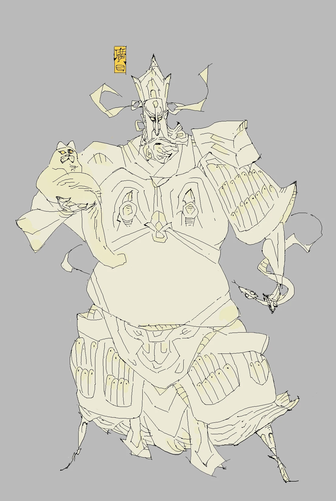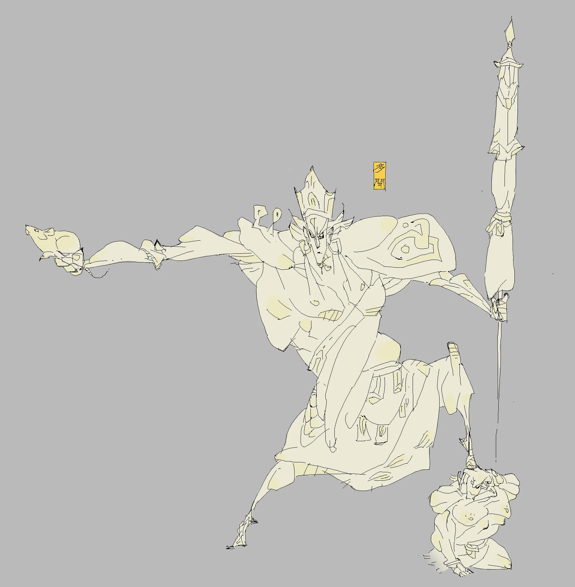 “广目“意为能以净天眼随时观察世界,护持人民,故名广目天王。住须弥山水晶埵,身为红色,穿甲胄,手缠龙蛇(加了魔礼寿的紫金花狐貂)。