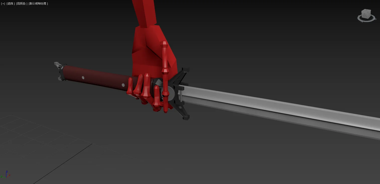 在设计之前,我了解到了中国剑在持握时,需要以食指与拇指为核心,将剑柄夹持。这点是中国剑法灵活飘逸的保证。因此,我在剑格上设计了一个能够较好地适应人手夹持的圆形点,同时这个点也是剑旋转的核心,使剑招与剑身之间有了一定程度的对应关系。在此之外,我也设计了食指、中指这两个在剑的持握起到相当重要作用的手指能搭在上面的凹槽,从而使本剑持握起来更舒适一些。持握姿势如图8、9所示。
