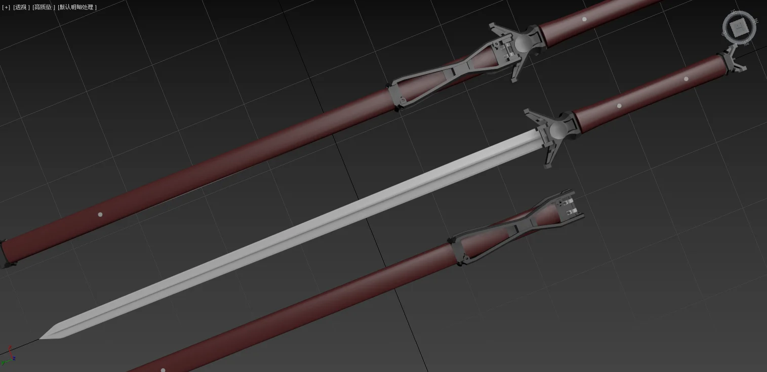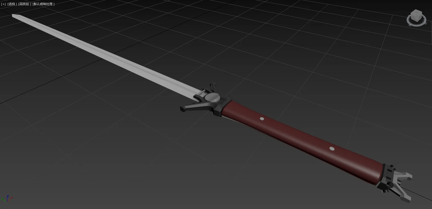 本设计是基于清代元宝剑格双手剑进行发想得来的,以剑及剑鞘上的装具结构为重点表现对象的现代风格双手剑。