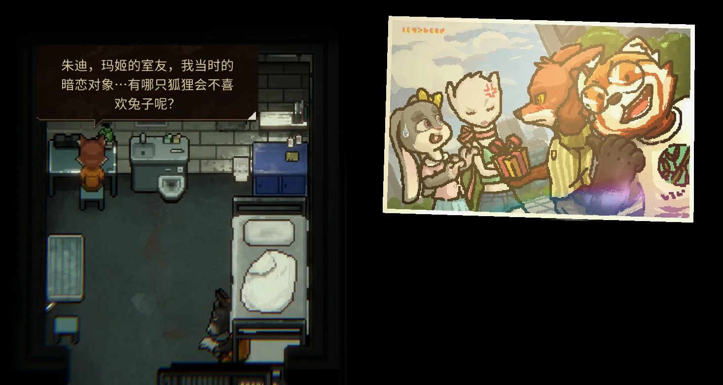 《动物迷城》一周目坏结局通关,可以说是国产RPG神作,期待出第二个主角~虽然还是EA版,但狐狸托马斯的故事线是完整的,可探索内容也很多,比如和46个性格迥异的狱友交流感情,好感度点满之后才能深入了解他们的背景故事,我直到通关也才刷了四五个。狱友之间的对话也很有意思,不仅有很多梗,还能由此判断他们的个性和人际关系。