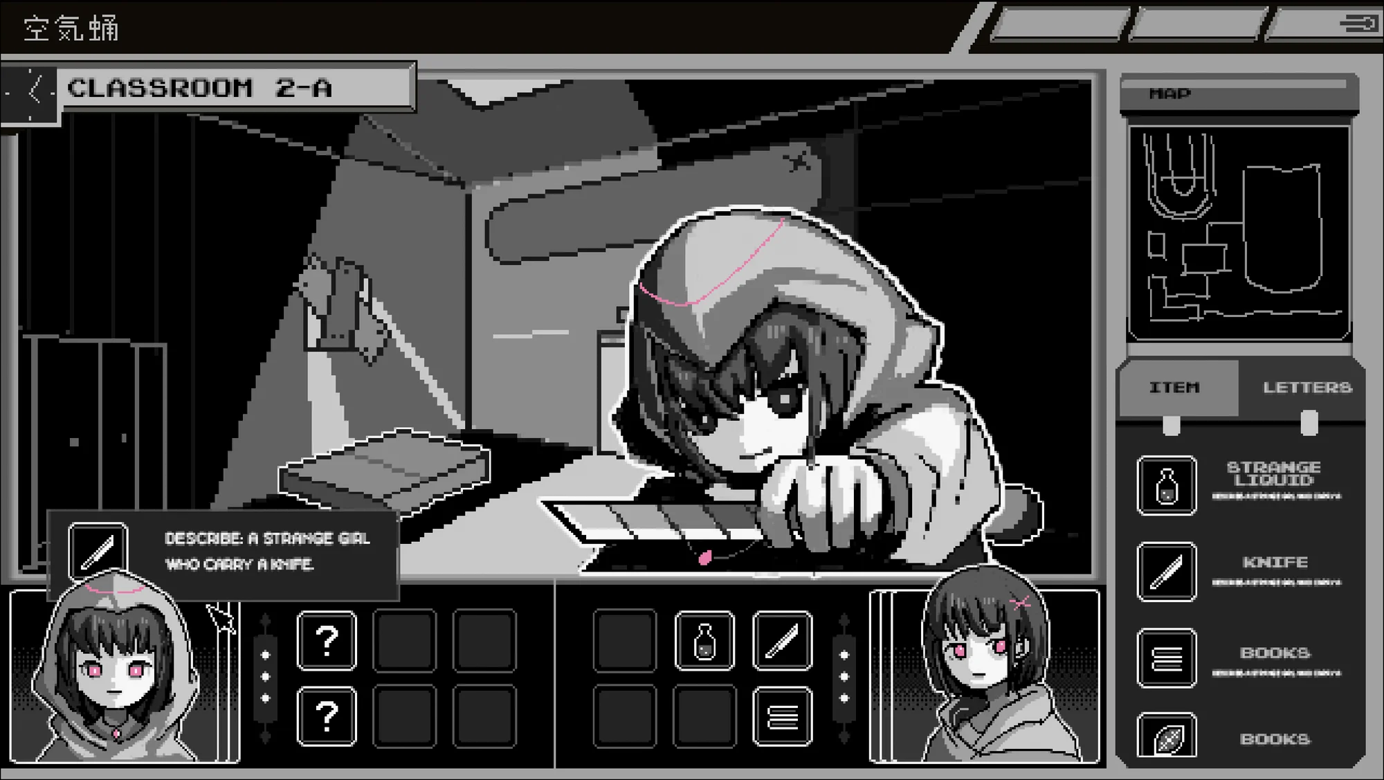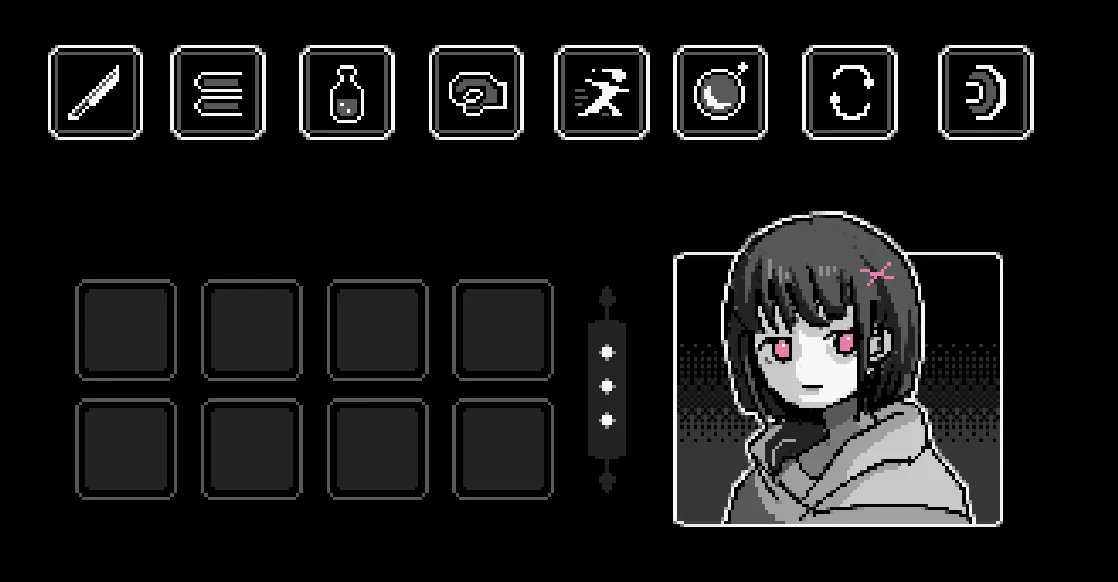本作规模较大挑战不小,想用单色像素做出一种复古怪诞的冒险故事,(先糊出了一个界面,组内大家反响还不错)感谢我们的剧本老师提供的很棒的故事,一定要期待!