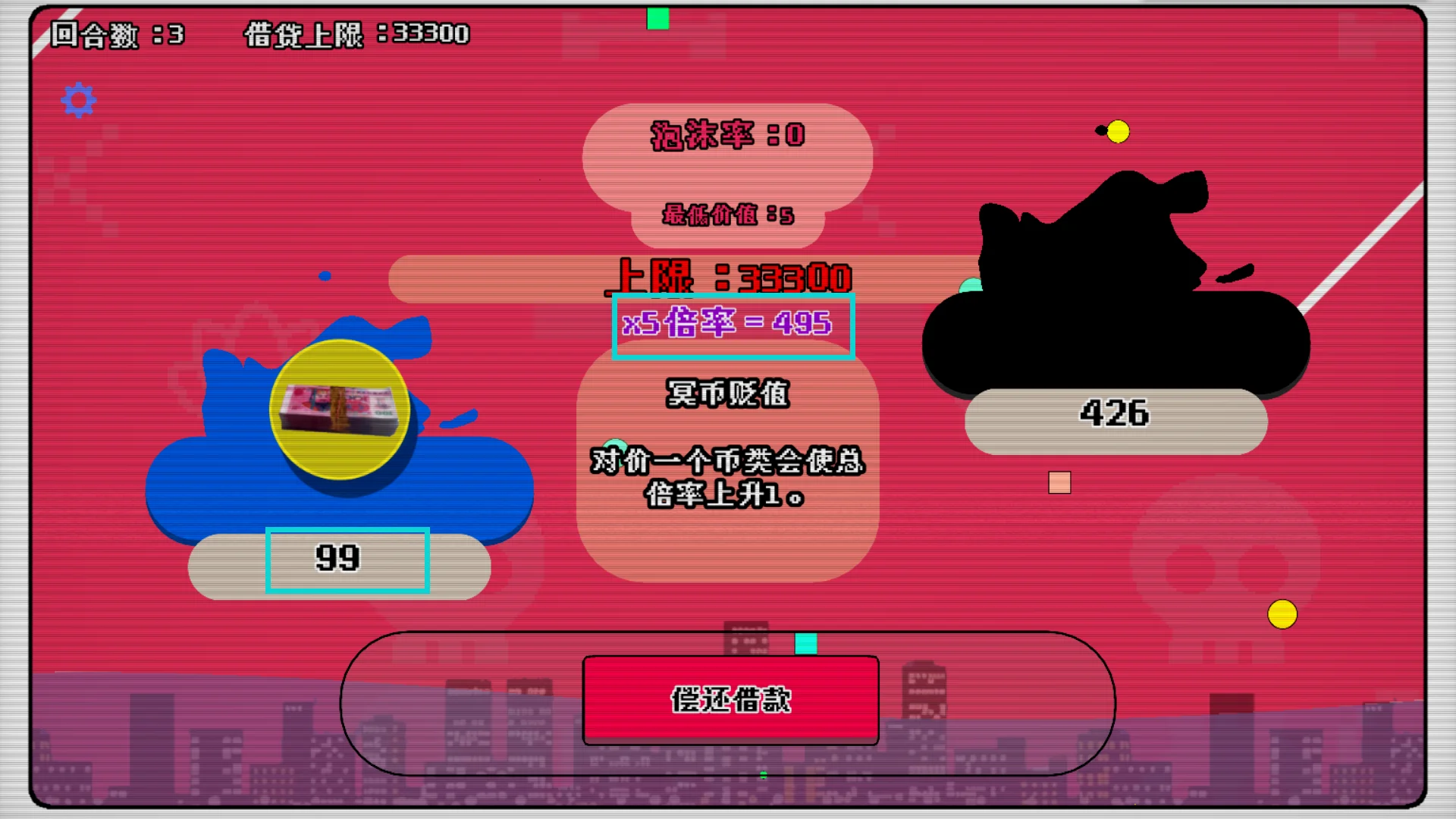 但好在我最后终于玩明白了,然后我就在思考,我玩小丑牌之前也对德州扑克的术语不了解,为啥一下就懂了。个人感觉让人困惑的主要原因是一些关键的数值性UI的排列和主次不是很到位。比如说“上限”和“借贷上限”容易让人产生困惑,然后这两个上限和它们对应的数值内容的位置关系也没有在UI上表现的很明确。然后最后的储蓄界面理论上是组牌界面,但感觉没有很直白的传达出来,让人第一感觉是养成要素。
