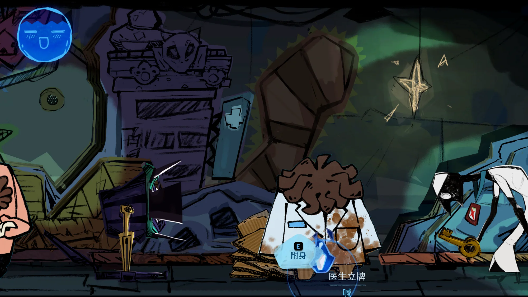 令人印象深刻的游戏!手绘风格的美术很有特点,可互动的物体和场景融合地特别自然,仔细观察了一下发现解密相关地物品互动会在轮廓上有一层蓝色的边缘用于作为区分。