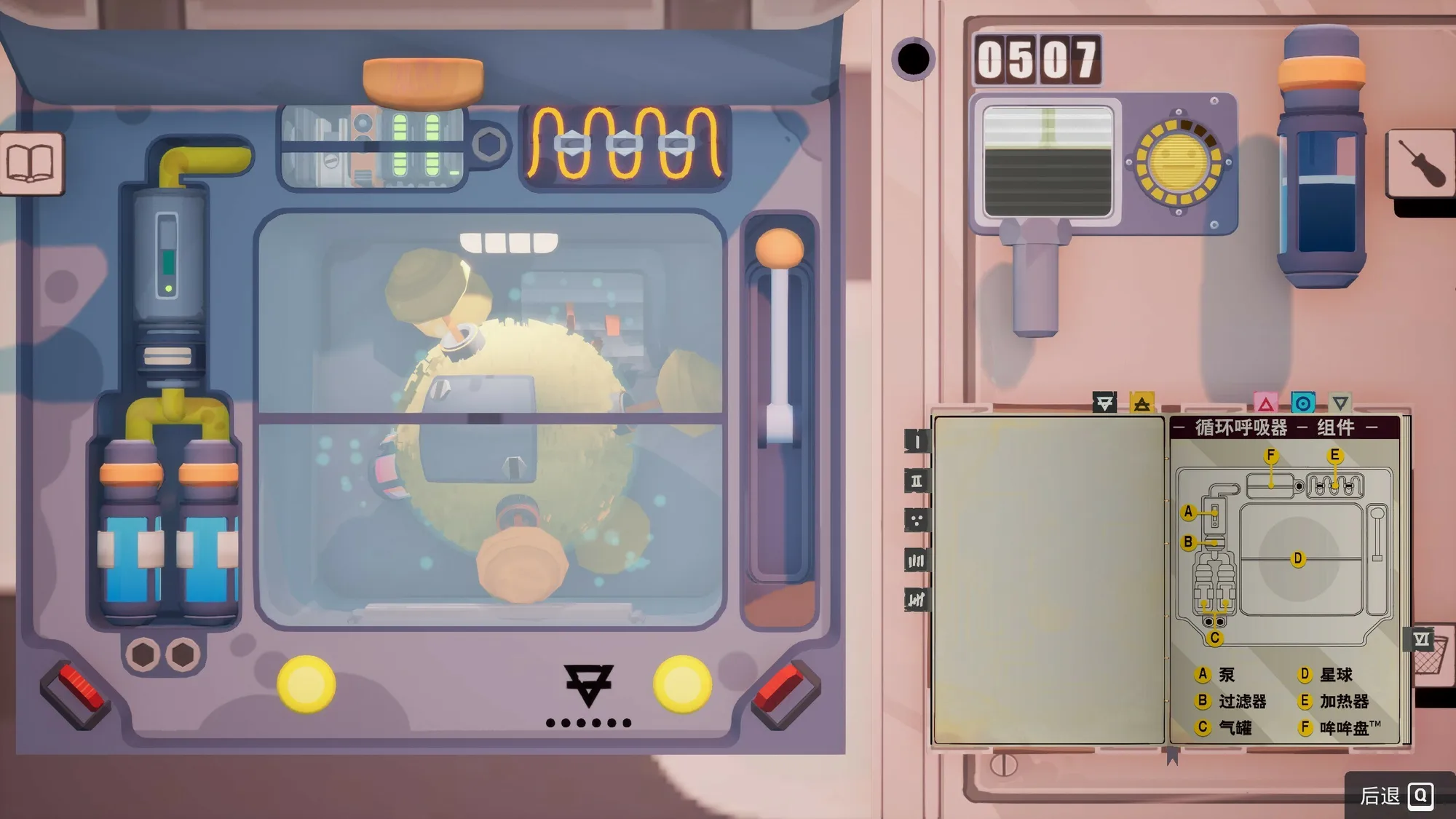 其次毕竟是个外星科幻背景嘛,所以一开始加油加水补充润滑还挺常规,到后面星图、VR、循环呼吸器、人工智能这些就开起了脑洞,就比如循环呼吸器的造氧机制是禁锢了一个迷你星球,通过调控星球上的蜗牛和树木的比例来提供氧气,颇有Rick&Morty修姥爷飞碟的感觉。