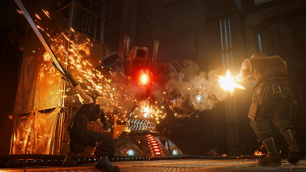 至于玩法方面,一个最主要的改动就是把回合制变为即时战斗。游戏里的大量战斗都以即时战斗为基础,玩家可以体验到像ACT一样流畅丝滑的连段和防反,但这不意味着完全抛弃回合制,相反,《FF7RE》在尝试”做一种很新的东西“。