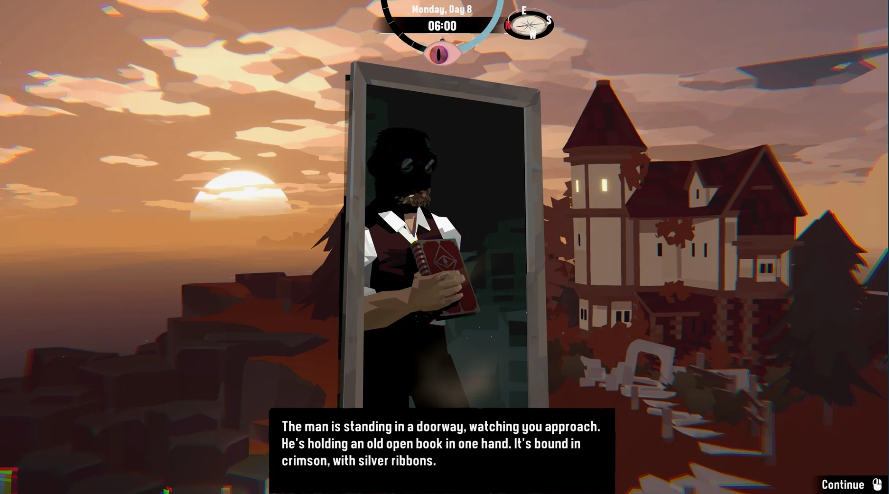 游戏的另一个特色在于克苏鲁背景,或许也是作品的核心魅力所在。虽然出海捕鱼的过程看似平静,不过在屏幕中央的「克苏鲁之眼」会提醒你一切都没有那么简单。在最开始,玩家会发现自己捕获到的鱼类产生了奇怪的畸变,而随着游戏进程的推进,作品还会用NPC的剧情文本对话引导着故事的发展,提醒你去揭示那些被隐藏的秘密。