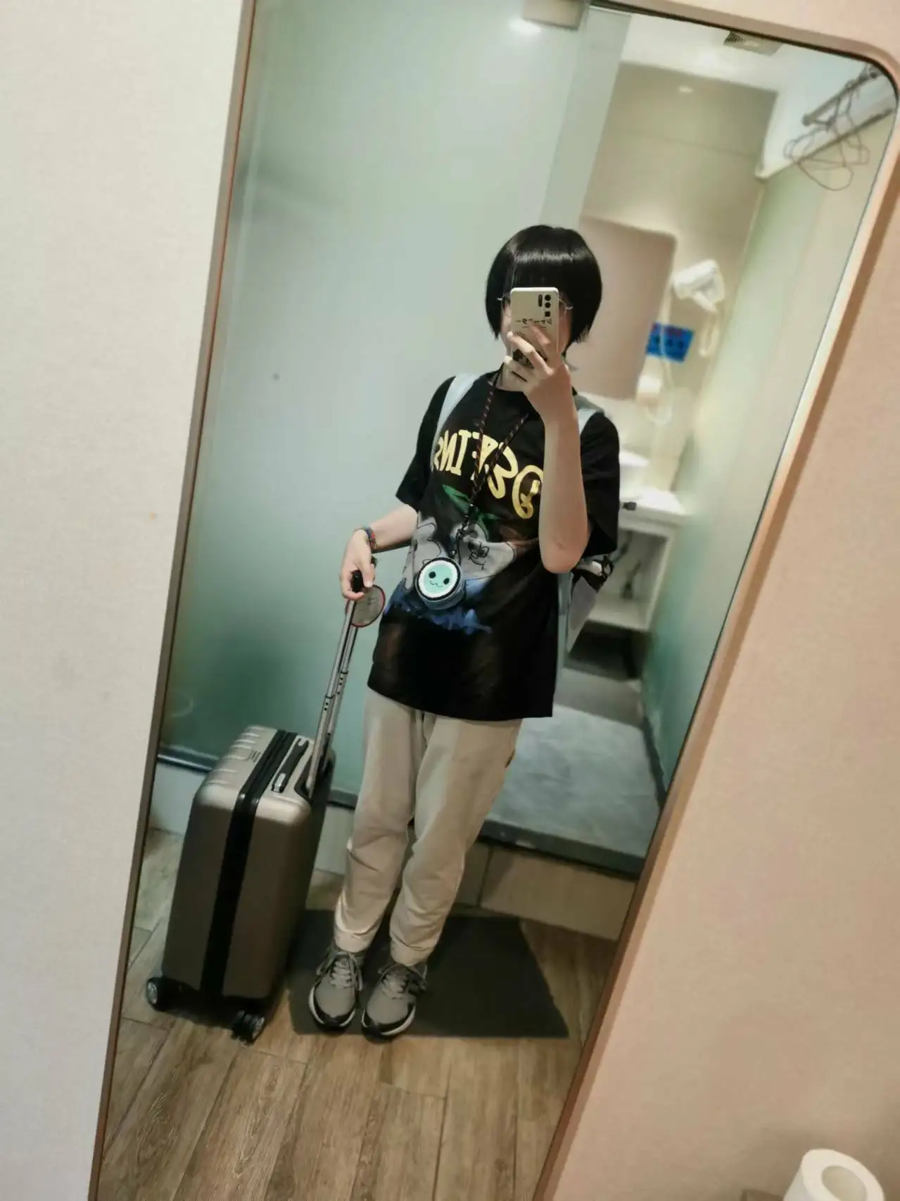 图5:临走前拍的出行图,来的时候忘拍了,脖子上挂着的就是上面说的太鼓达人的小包,广东太潮衣服不好干,容易皱,这身衣服专门留着一直没穿,原本想留着去南京面基时穿。