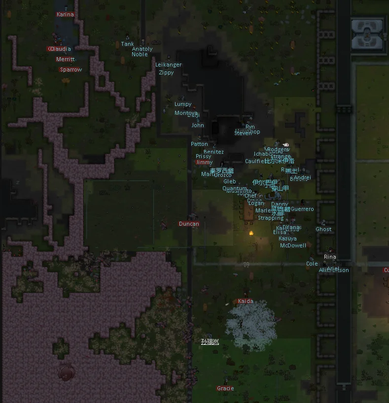 图一:大概半天的时间它就能失控到这个地步,我无比庆幸我挖了沟渠当护城河所以它才不得不南北向的发展以及不会直接干到我城墙下。