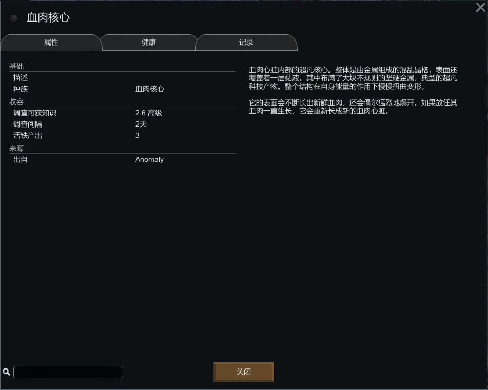 血肉心脏/血肉核心绝对是边缘世界异象DLC中最屎的最丧心病狂的一种天灾,这次虽然我最终成功收容了它,但如果下次再看到一次我绝对会读档的。太屎了真的,它还好是出现在了我的地图边缘的平原区域,它要真的出现在我的山体内基地中我就真读档乃至删档了。你无法一次性以最暴力的火力消灭它,你不得不和它周旋最起码三天的时间,而且每天你都要研究解析它生成的一个血肉肉芽还不啥的一个东西,这意味着你要杀进肉海里,把血肉袋破坏,然后研究这个肉芽,连续做三次你才能最终无效化血肉心脏。