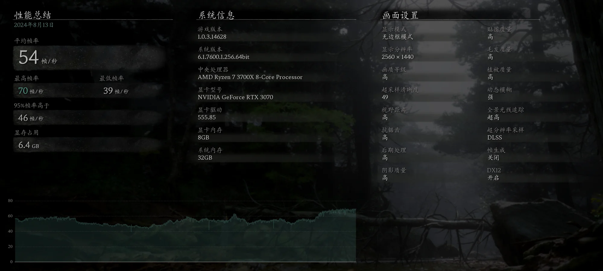 我的3070测下来我个人认为综合最好的两套配置,接电视开启VRR后就能流畅体验了,建议FSR帧生成能不开就不开,benchmark里的帧生成是3.0版本,一开就有残影且画面抖动严重非常不舒服,看似帧率很高实则体验降级,远不如DLSS清晰干净,且同等级超采样下DLSS表现也比TSR和FSR优秀,我个人对帧率要求不太高,画面够好的同时整体稳定即可,给大家参考下