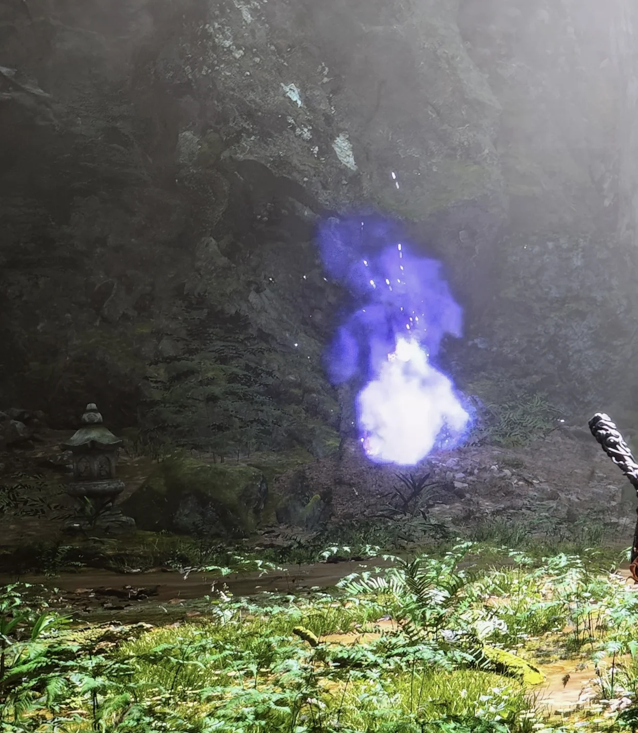 朋友们,打完这个大头和尚「幽魂」掉落的紫色火焰,之后拿到关键道具后可以在土地庙菜单的「拾遗」里领取,放心大胆地打嗷~ 打完扭头就走嗷~
