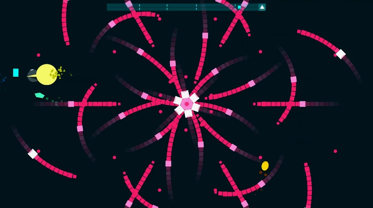 《Just Shapes & Beats》是一款主打弹幕闪避玩法的另类音游,游戏中玩家将扮演一个白色小方块,通过躲避环境效果完成游戏。