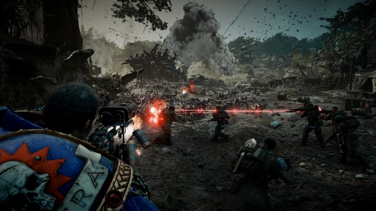游戏在视觉效果的表现上便展示出了极高的工业实力,战锤宇宙中各种科幻效果都在游戏中给足了演绎,作为《僵尸世界大战》开发商开发的又一作品,其拿手的尸潮再一次应用在了本作中,密密麻麻的泰伦虫族虫潮给足了玩家紧张于压迫感,广阔恢弘的战场视觉演绎频繁,并且切身融入到玩家的战斗中,给足玩家爽感!