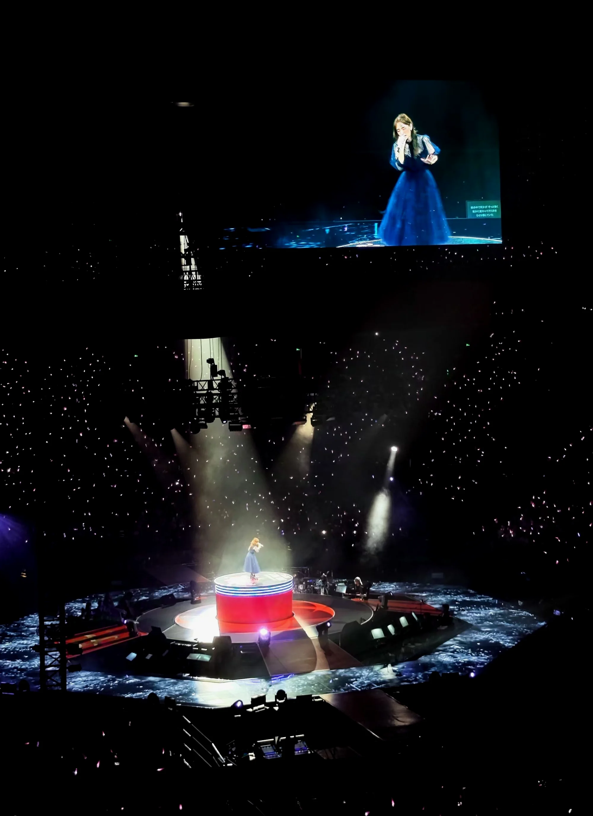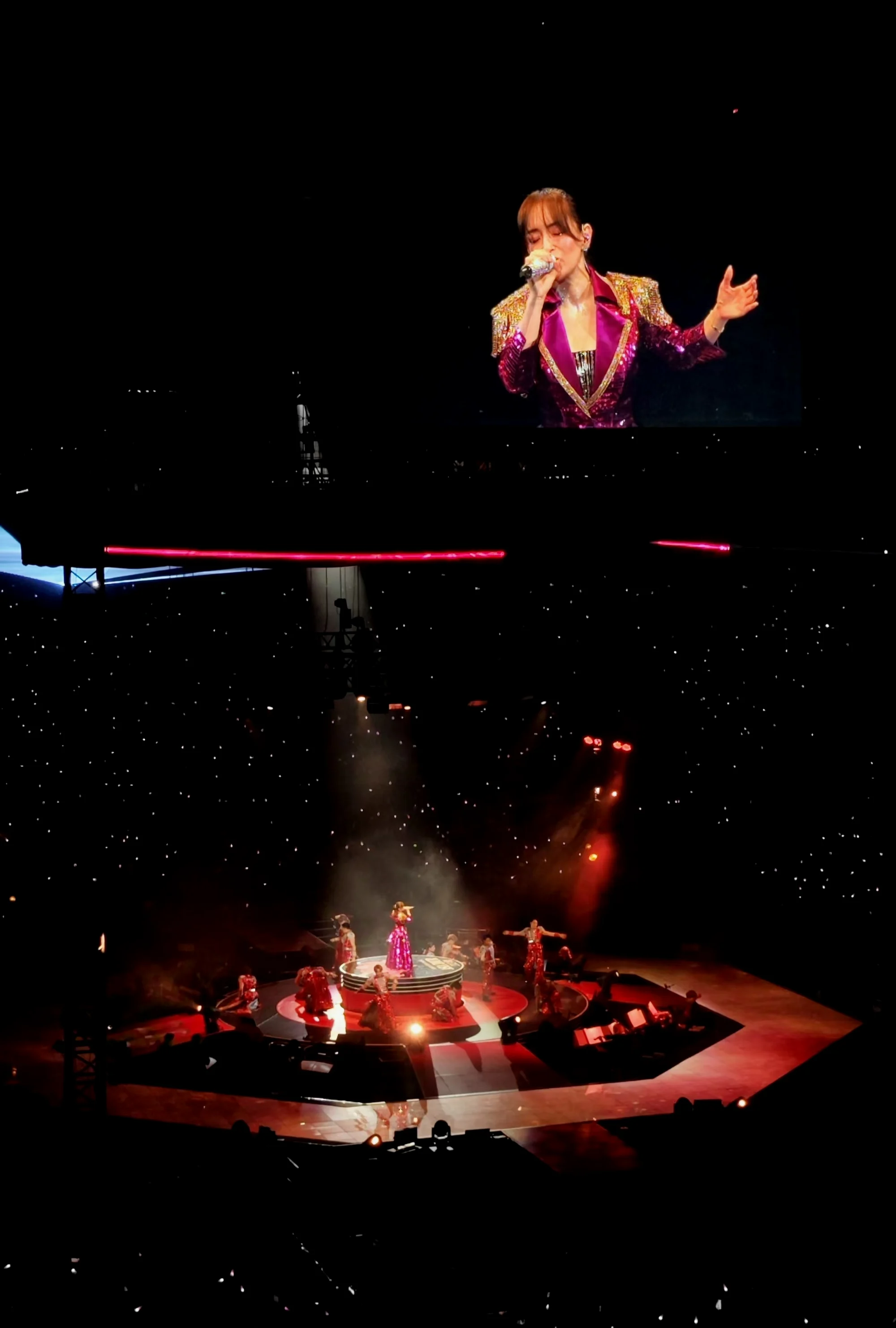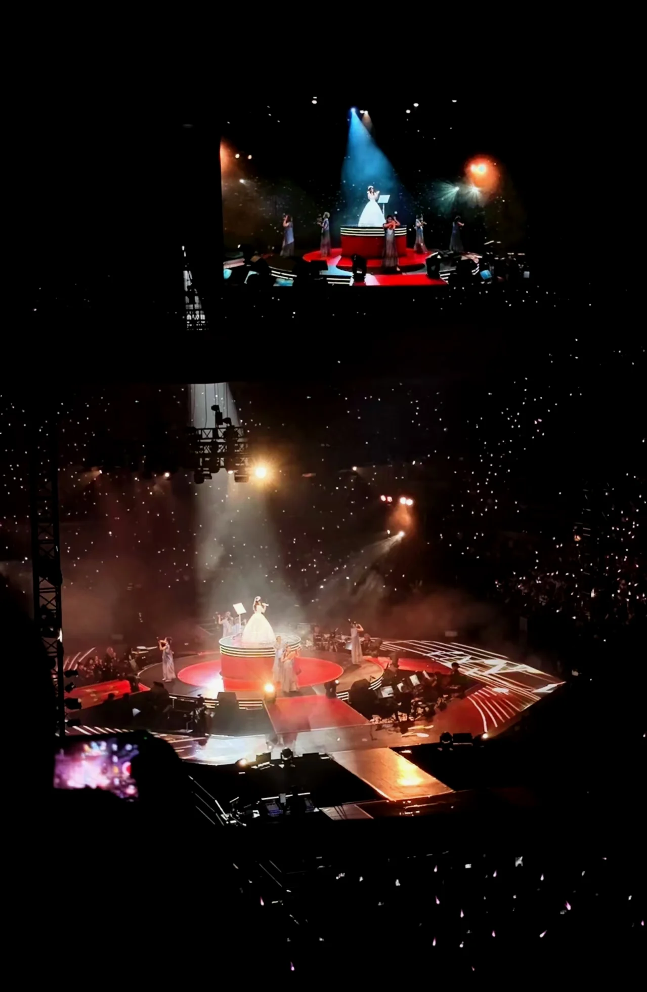 我老婆现场质疑我的粉丝成分,说你和这几排的老叔叔们怎么坐在那那么淡定,不像是粉丝。我回答说,我们这些中年人就是来看看老姐姐好不好的,听听歌就行了。