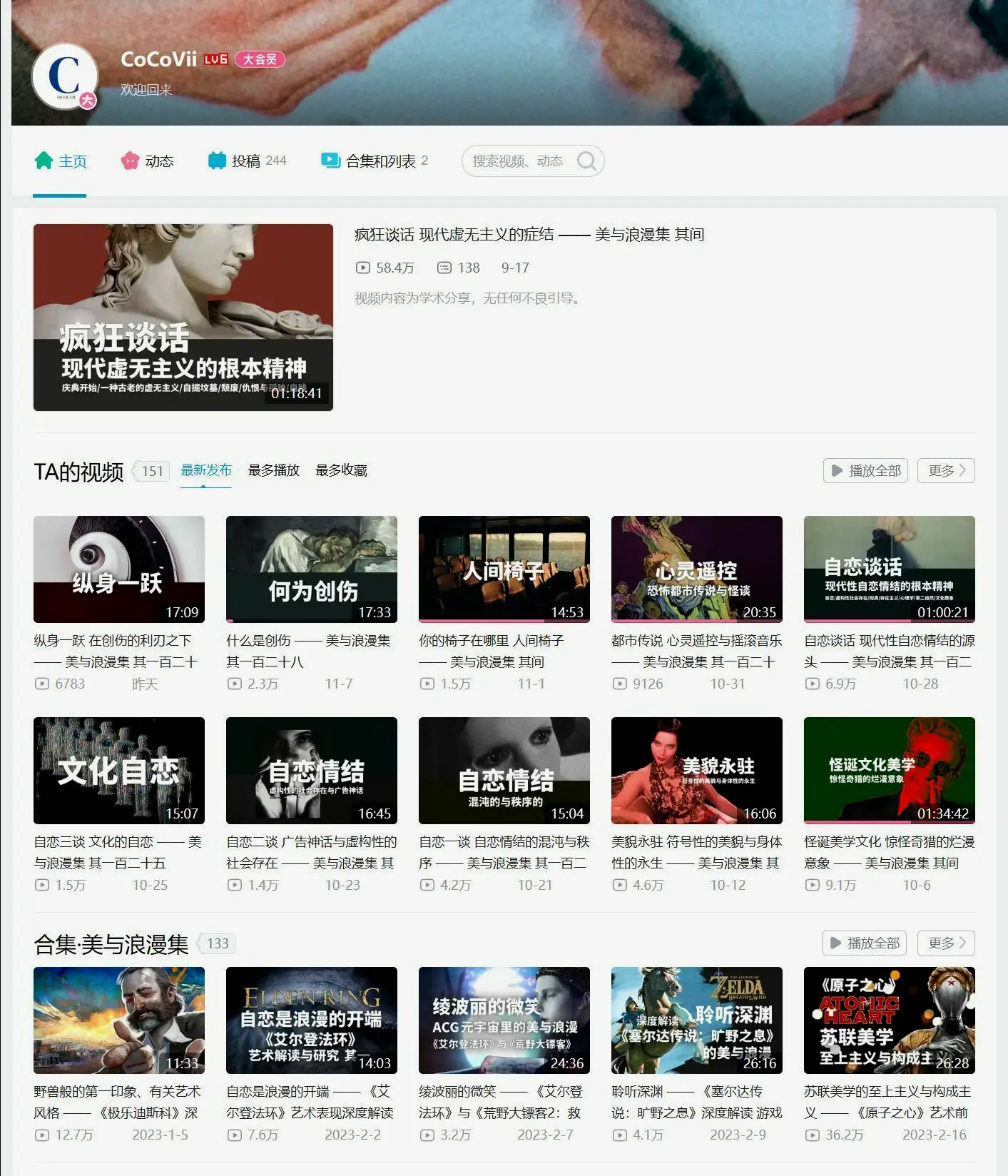 最近喜欢的两个up主,都是从哲学,艺术史以及各种旁征博引的角度来解读流行文化艺术的,知识量和阅读量都十分惊人。